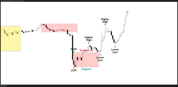 Usando padrões como Máximas Mais Altas, Mínimas Mais Baixas e mais para avaliar a direção do mercado.