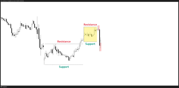 Manipulação: Aguarde o preço acionar um rompimento ou uma quebra nos níveis de resistência ou suporte. Observe o preço no prazo mais baixo se ele está criando