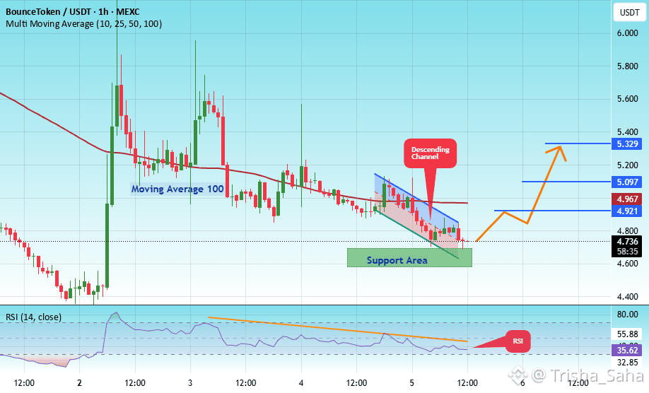 There is a key support zone in green at 4.60, and the price has bounced from this level several times. Another bounce is expected.