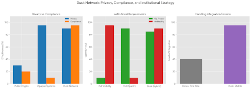What really defines Dusk is how it handles privacy without pretending compliance doesn’t exist. Crypto loves transparency until transparency becomes a liability. Full visibility sounds great in theory, right up until you realize no serious institution wants its internal operations broadcast to the world. At the same time, regulators won’t accept opaque systems they can’t audit. Most networks pick a side and hope it’s enough. Dusk sits in the uncomfortable middle, trying to make both coexist, and that tension shapes everything it does.