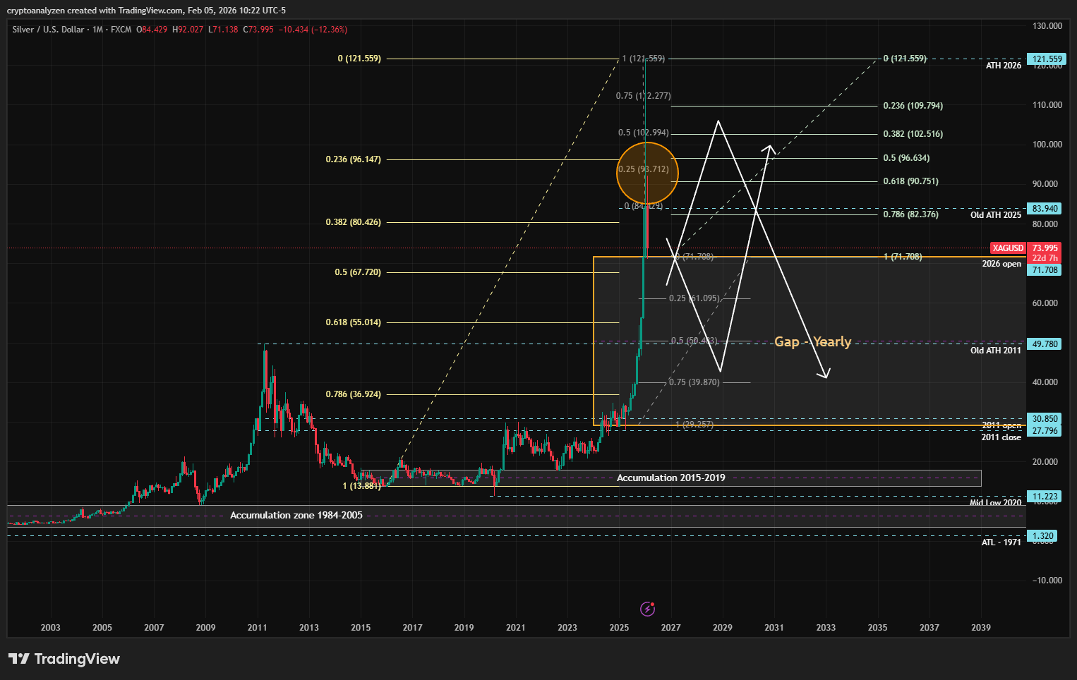 📌 In January 2026, the rally continued due to strong public FOMO, and a new all-time high at 121.559 was formed.