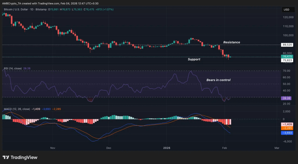 Em 4 de fevereiro, o Bitcoin atingiu uma baixa próxima a $73K. Mike Novogratz expressou surpresa com o movimento, afirmando que o ativo deveria ter mostrado mais resiliência contra a venda de ações dos EUA. Essa queda desencadeou liquidações pesadas em todo o mercado, deixando muitos pesquisadores manuais se perguntando se o fundo está realmente próximo.