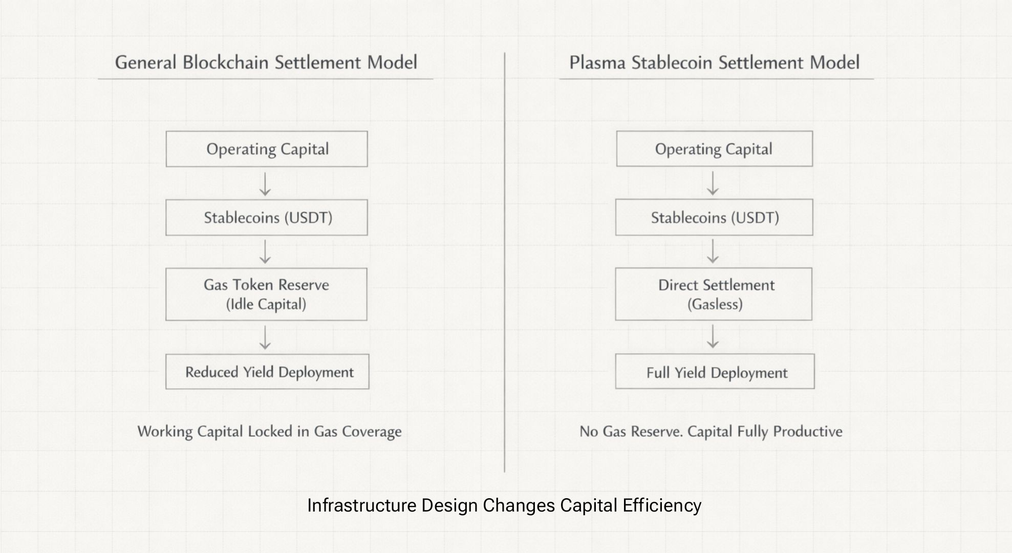 Plasma's architecture eliminates the gas token drag and unlocks that 3% working capital.