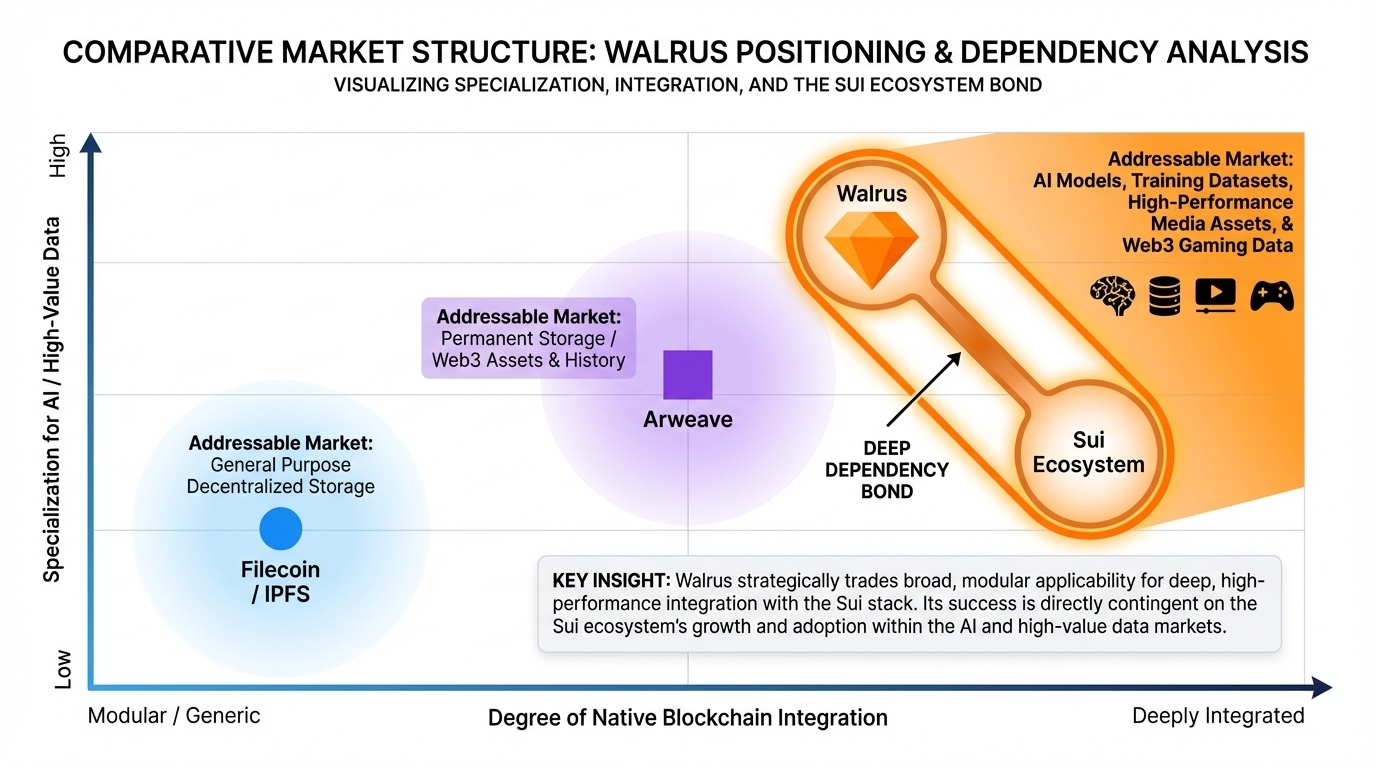 Walrus represents a fundamental bet that the next wave of crypto value will be built on data-as-asset, not data-as-record. Its entire architecture, from Red Stuff's efficient recovery to Seal's programmable privacy, is engineered for that specific future. Trading or investing in WAL, therefore, is not a bet on decentralized storage adoption broadly. It is a concentrated bet that the Sui ecosystem will become the primary settlement layer for the AI economy's data, and that Walrus's specific technical compromises deep Sui integration, complex validator economics, and compliance-focused privacy are the correct ones to capture that value. The risks are high and tightly coupled, but the reward, if the AI data thesis plays out, is a position in the fundamental plumbing of a new asset class.