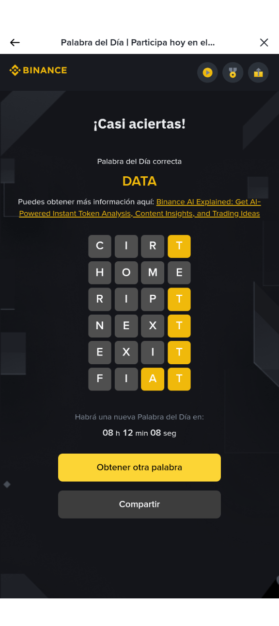Recién #Binance invita a los usuarios a participar en la palabra del día poniendo a prueba sus conocimientos sobre IA para desbloquear recompensa HOME adivina la palabra del día y te permitirá conocer más sobre el vocabulario cripto y mantenerte al día de los últimos acontecimientos del mercado. Te dejo mi código de referido para que entres y comienzas a jugar, Juega Wotd ahora y gana recompensas, mi código CPA_00KW7ZGJPB $BTC