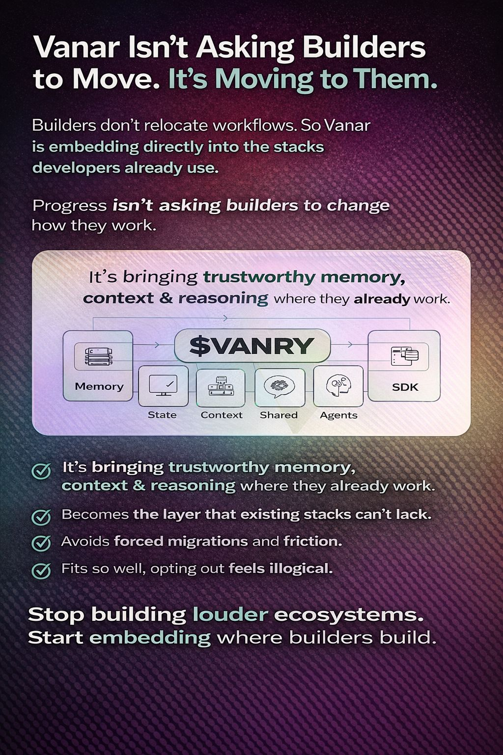 By integrating directly into where builders already operate, Vanar reduces friction to near zero. No forced migration. No abandoned toolchains. No ideological buy-in required.