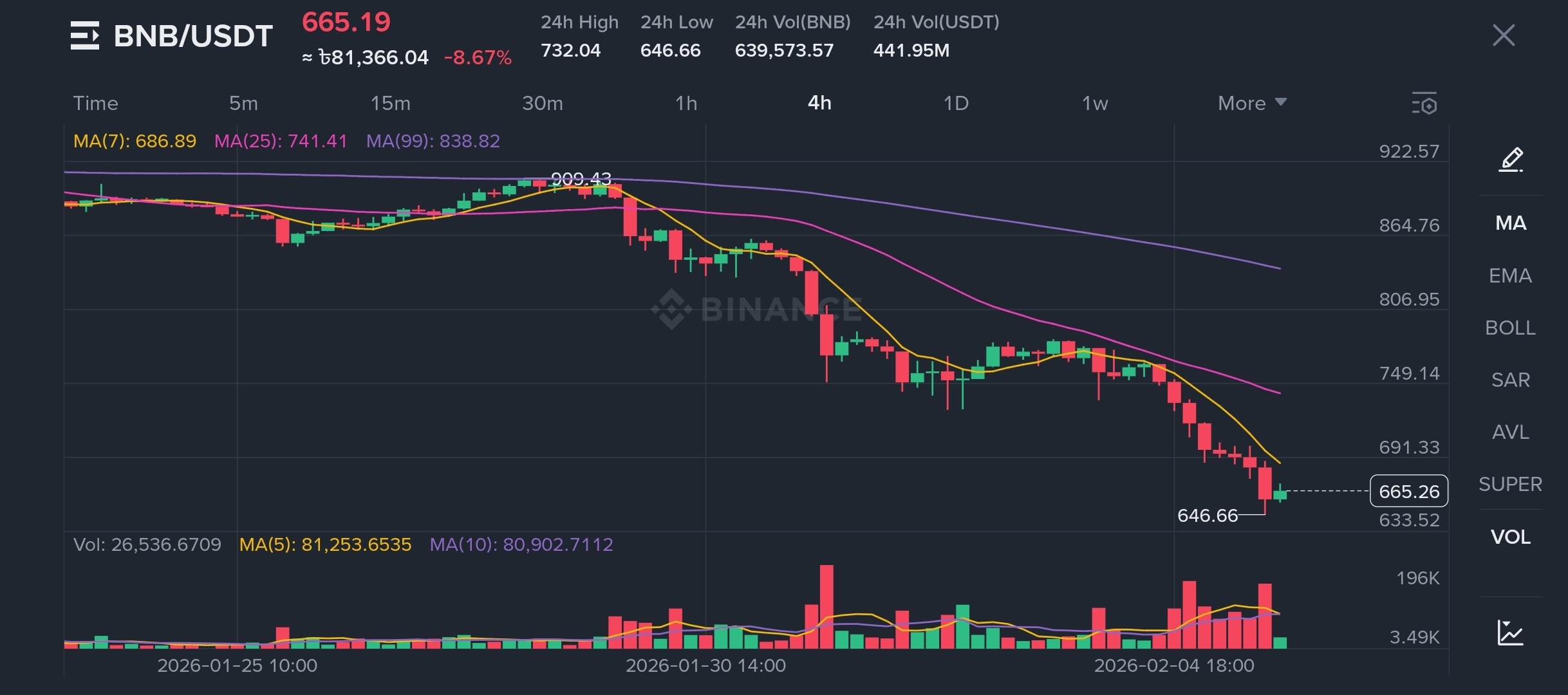 Relative Strength: While the global crypto market cap dipped roughly 6% today, BNB’s upward trajectory suggests that internal ecosystem drivers are outweighing macro fears.