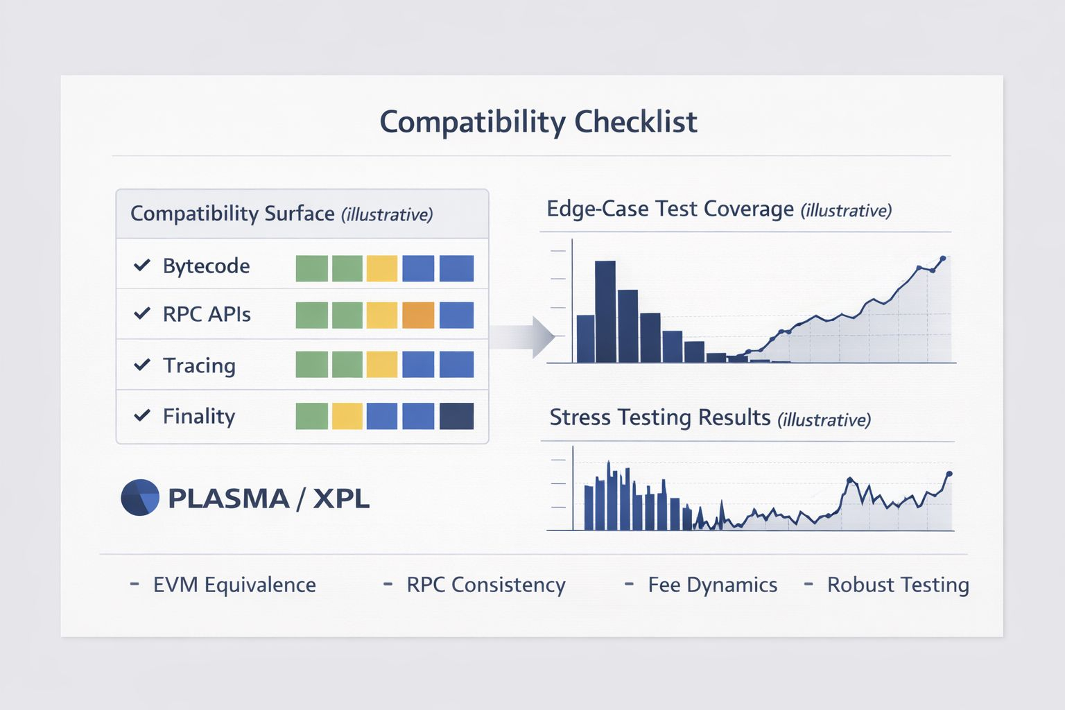 When someone tells me a chain is “EVM compatible,” I feel a little tension I can’t quite turn off. On one hand, it suggests I can keep shipping with the tools I already know: Solidity, Foundry or Hardhat, the usual wallets, the same mental model for how contracts behave. On the other hand, I’ve watched “compatible” get used as a friendly label for systems that are only similar in the broadest sense. Plasma is a good lens for this, because its docs say the execution environment is fully EVM compatible and powered by Reth, and that developers can deploy existing Ethereum contracts with familiar tooling. That statement sounds straightforward until you sit with what builders actually rely on. The EVM is not just a runtime; it’s a bundle of expectations. It’s opcode behavior, gas accounting, precompiles, and the exact way calls and reverts play out in the odd corners you only hit after launch. It’s also the plumbing around it: the JSON-RPC methods your backend assumes exist, the tracing calls your debugger and monitoring rely on, and whether your node falls over when a release drives a burst of reads. This is where “Reth on Plasma” matters more than it sounds. Reth is an Ethereum execution client written in Rust. Paradigm put it forward as something built for speed and clean modular design, and it’s presented as a real full-node client—not a thin wrapper around someone else’s code. So when Plasma leans on Reth, it’s basically saying: we can make the unglamorous stuff like syncing, storage, RPC performance, and day-to-day node operations better, without asking builders to rewrite contracts or learn a new execution model. You can see the same bet spreading: BNB Chain has publicly discussed work on a Reth-based client with an eye toward faster sync and higher node throughput. The reason this conversation feels urgent now, instead of five years ago, is that the workload is changing. Stablecoins have moved from being mostly trading plumbing to something closer to payment infrastructure, and recent reporting describes record stablecoin transaction volumes across 2025. When money-like flows are constant, “almost the same” stops being good enough. I’ve felt that anxiety myself: the fear that a tiny difference will surface only after users arrive, when you have no easy rollback option. A subtle mismatch in RPC behavior is annoying in a demo and catastrophic in a settlement path. At the same time, compatibility has a spectrum, and the ecosystem has scars. Optimism put words to this when it argued for “EVM equivalence,” basically saying that bytecode execution alone isn’t enough if the wider universe of Ethereum tooling keeps breaking in small, surprising ways. I find it useful because it keeps the conversation grounded. If Plasma is saying your contracts can move over as-is, take the win, then immediately start validating the assumptions that sit underneath your app. Look at block cadence and how finality is expressed, how fees fluctuate, how much lag your indexing pipeline introduces, and what happens when you lean on tracing or less-common RPC methods. EVM compatibility gets you through the door, but the real payoff depends on whether everything around the EVM behaves the way your product expects.