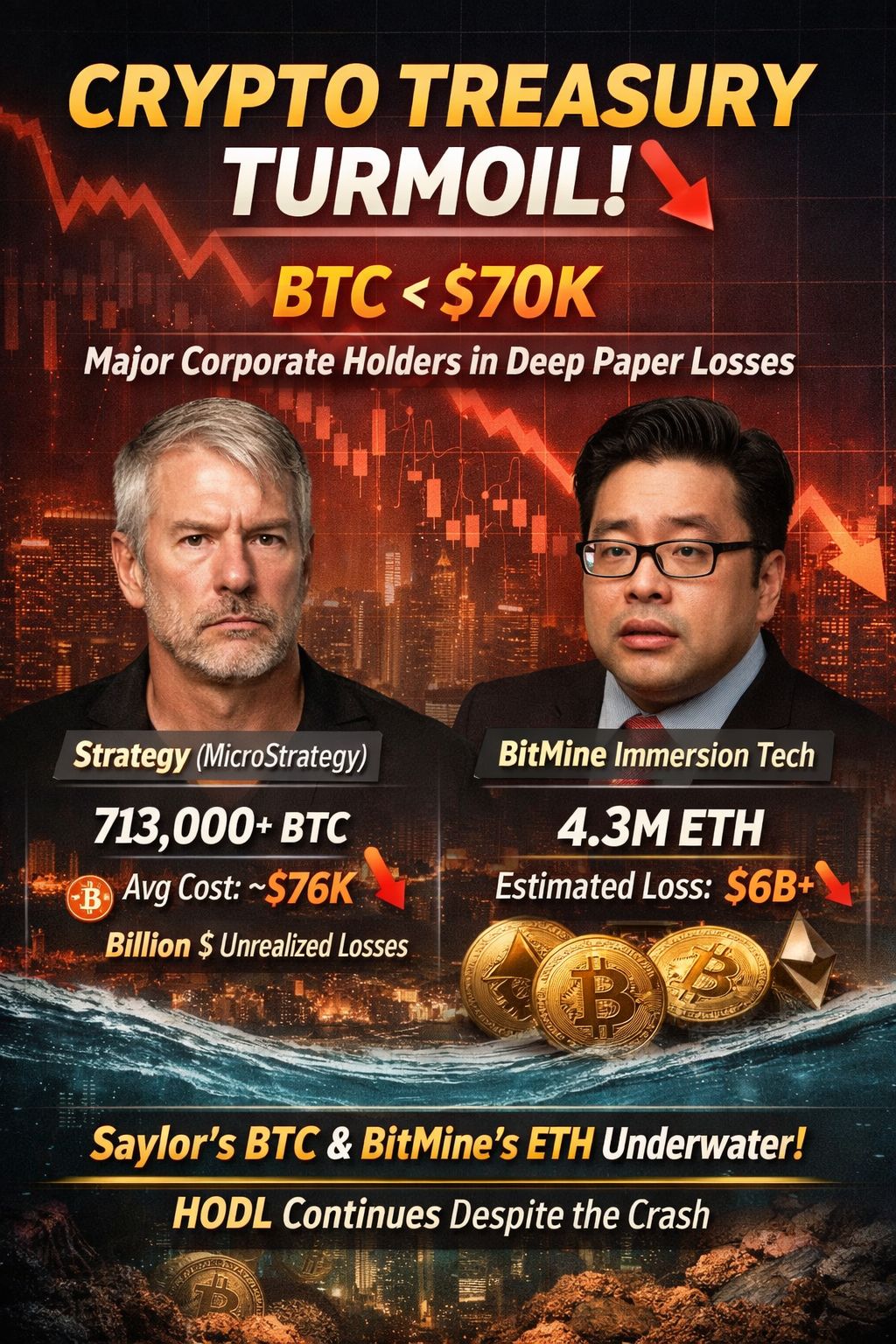 Estas são perdas em papel, não em dinheiro — a menos que vendam. Mas isso prova uma coisa: balanços pesados em cripto se movem rápido... em ambas as direções.