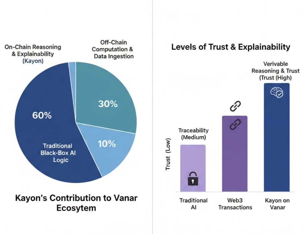 As blockchain and artificial intelligence move closer together, a critical problem keeps resurfacing: trust. Smart contracts may be transparent, but AI-driven decisions often are not. When logic runs off-chain or inside black-box models, users are asked to trust outcomes they cannot verify. This is where Kayon becomes important within the Vanar ($VANRY ecosystem. Kayon is designed to bring reasoning, traceability, and explainability directly on-chain, aligning AI logic with the core values of decentralization.