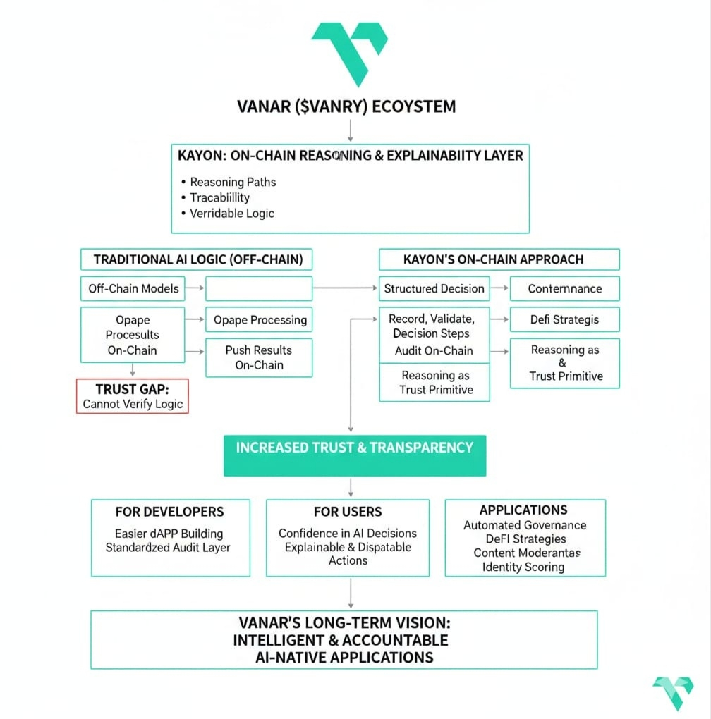 For developers, Kayon lowers the barrier to building trustworthy AI-native dApps. Instead of inventing custom audit or logging systems, they can rely on a standardized reasoning layer aligned with Vanar’s infrastructure.