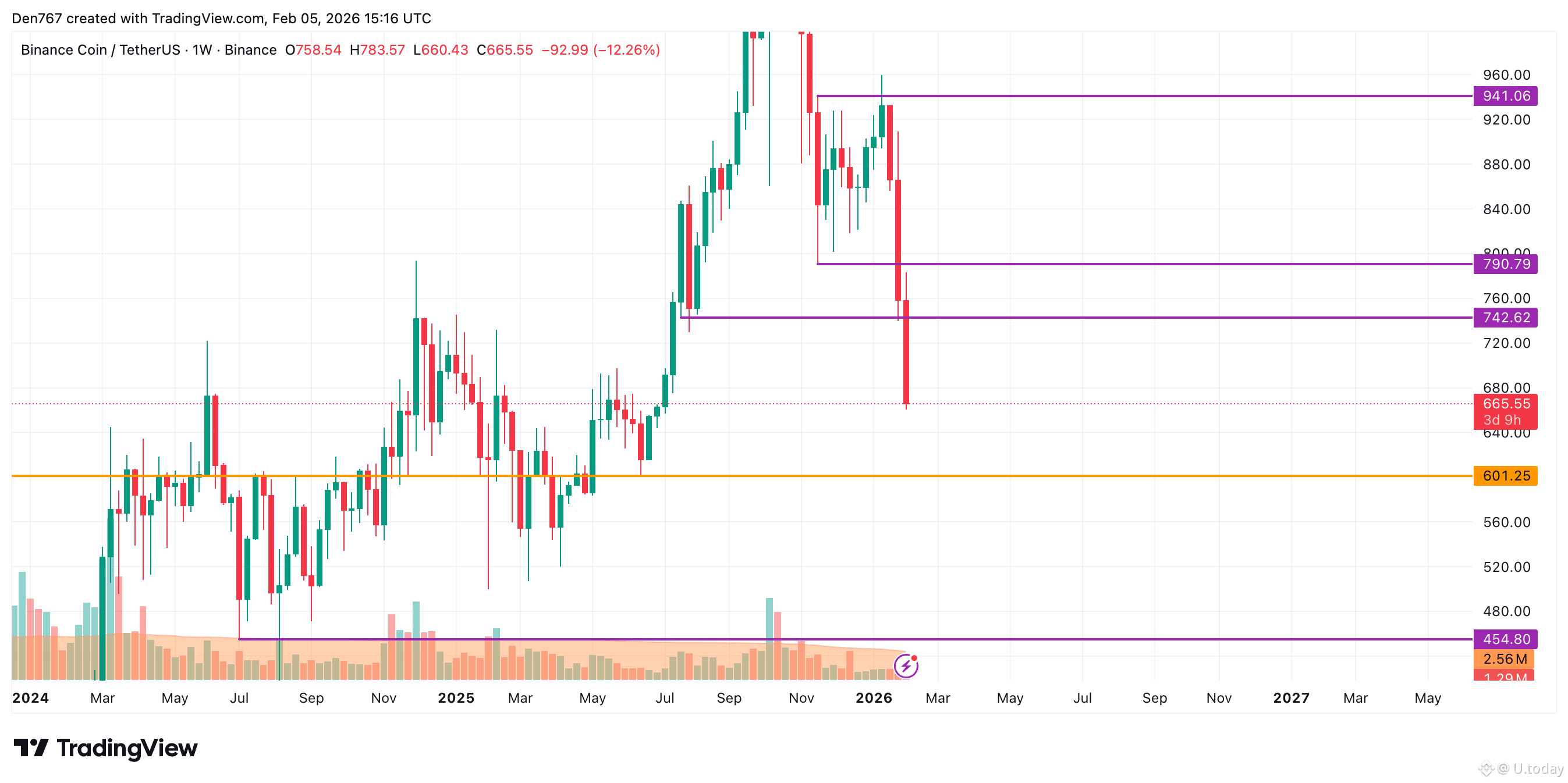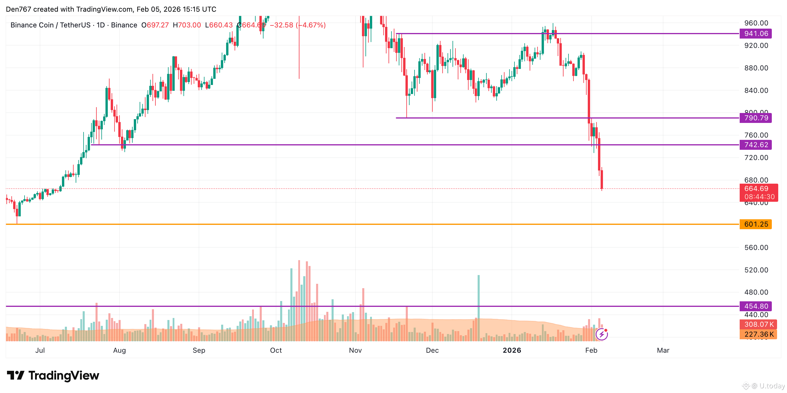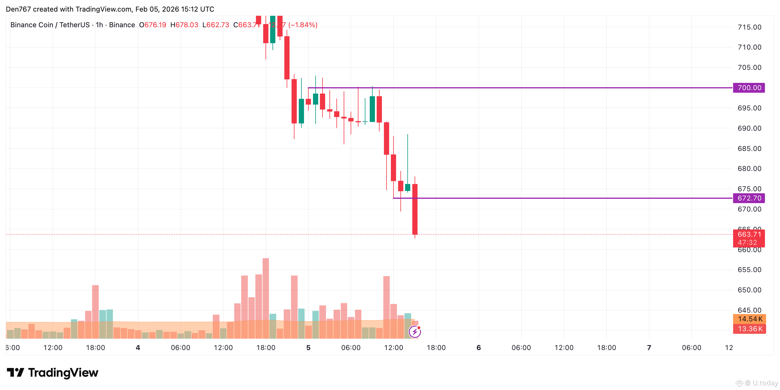 On the hourly chart, the price of BNB is falling after a breakout of the local support at $672.70. If sellers' pressure continues and the daily bar closes far from that mark, one can expect a test of the $650 zone soon.