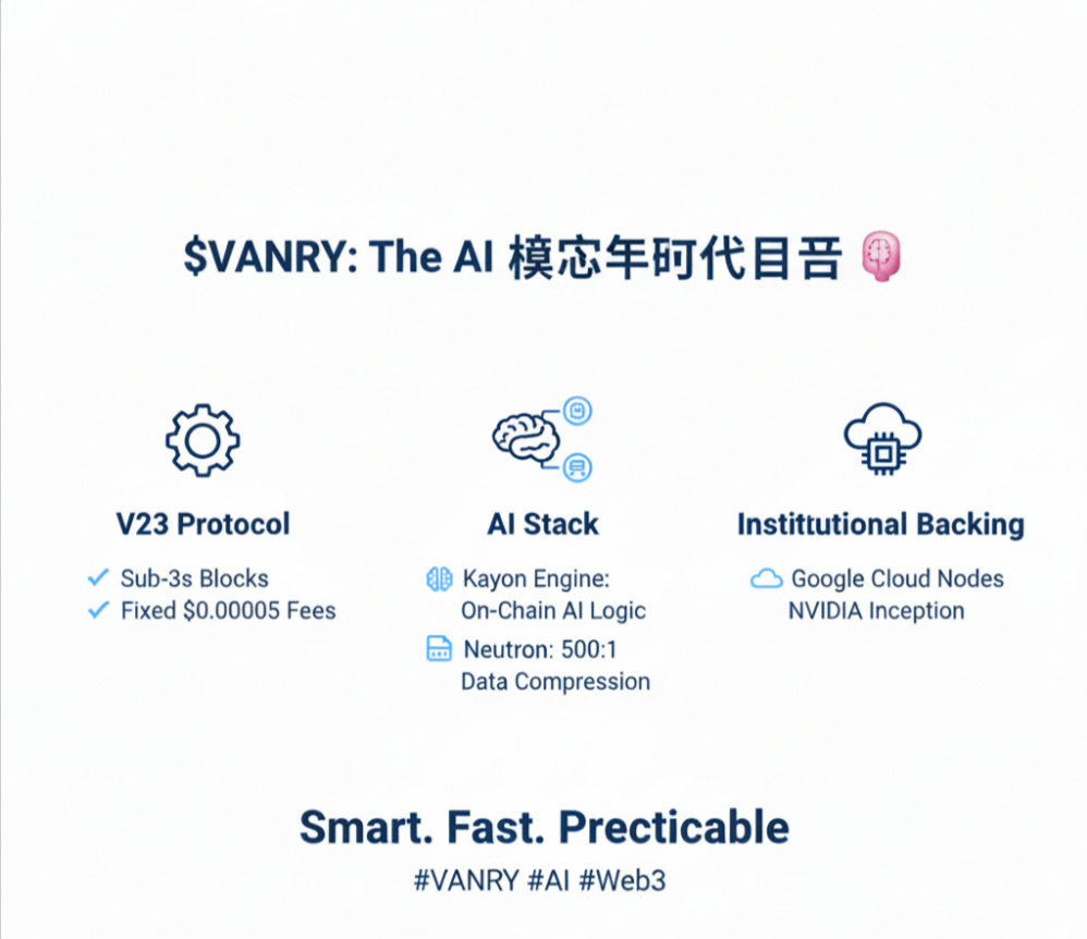 Devemos entender um ponto: enquanto a maioria das blockchains públicas ainda está lutando com altas taxas de transação e barreiras de entrada complexas, a Vanar já completou a construção do 'triângulo inteligente'.