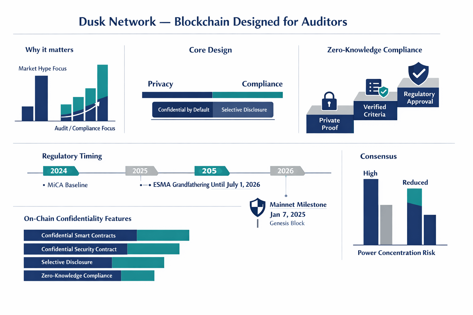 That’s why Dusk Network feels unusually relevant right now. Not because it promises a new kind of hype cycle, but because it is trying to solve a problem that keeps showing up whenever blockchain bumps into real finance: confidentiality. Most financial activity can’t happen in public. Not because everyone is hiding something shady, but because publishing every position, every client relationship, and every negotiation would be commercially reckless. Dusk’s core idea is simple enough to say out loud: make transactions private by default, but still provable when a legitimate party needs to verify what happened. Dusk frames this as bringing privacy and compliance together, including “zero-knowledge compliance,” where participants can prove they meet requirements without exposing the underlying details.