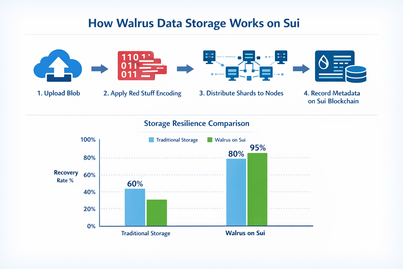 Dê uma segunda olhada na relação entre Walrus e Sui. A rede funciona com a velocidade do Sui para memorizar a localização dos dados e garantir sua disponibilidade. Ao escrever um arquivo, o Sui registra as informações e os bits são gerenciados pelos nós. Essa segmentação permite que o Walrus expanda sem desacelerar. Seu truque principal é chamado de codificação de apagamento e ele divide um arquivo em muitos pequenos fragmentos. Leve algumas peças, isso é tudo, o sistema pega outras para substituí-las. Para se tornar um membro, os operadores de nós postam tokens para garantir que todos não sejam desonestos. As parcerias mais recentes, por exemplo, a com Space and Time, tinham recursos para rastrear atividades em tempo real. Seus posts do Explorer enviam uploads, leem e a saúde dos nós instantaneamente.
