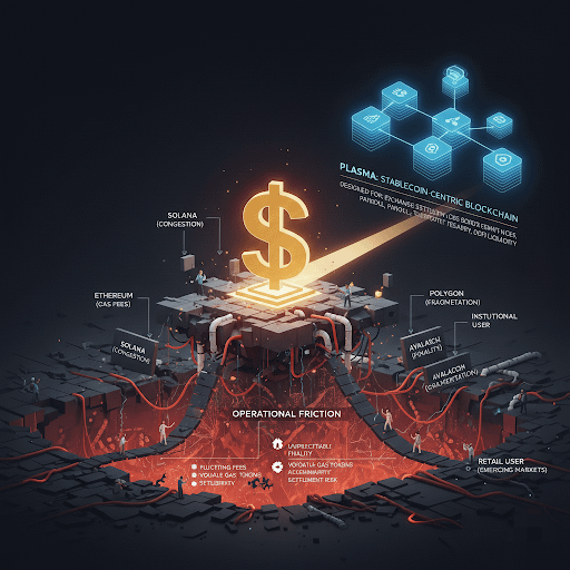 This fragmentation creates operational friction. Fees fluctuate. Finality can be unpredictable. Users must hold volatile native tokens just to move stable value. For institutions, this introduces accounting complexity and settlement risk. For retail users, especially in emerging markets, it adds unnecessary barriers to basic financial activity.