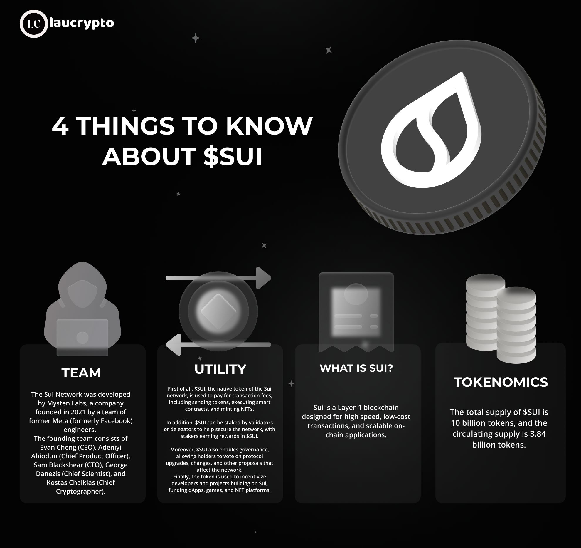 $SUI I é o token nativo da rede Sui, uma rede blockchain de camada 1 construída para aplicativos descentralizados (dApps), contratos inteligentes, jogos, NFTs e DeFi rápidos, escaláveis e de baixo custo.