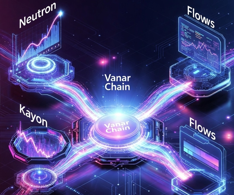 - 5层架构(Vanar Chain → Neutron → Kayon → Axon → Flows),数据从底层向上流动,每层都为AI优化。