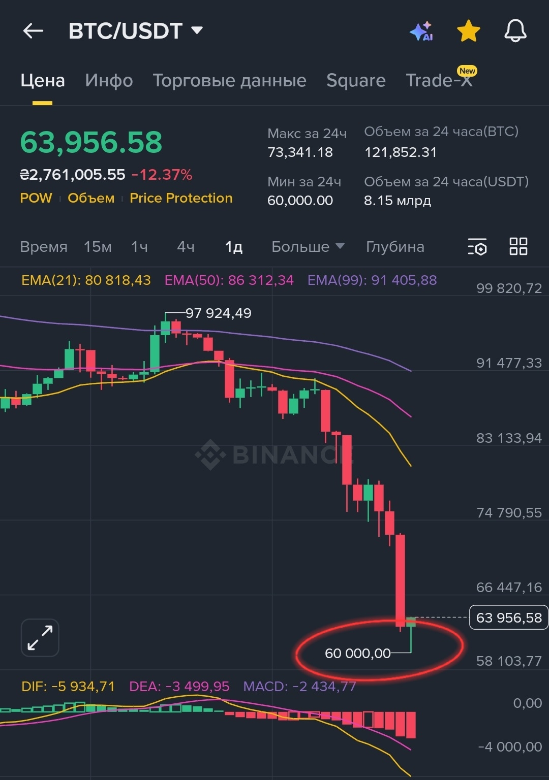 Esta noite, o mercado de criptomoedas sofreu um dos golpes mais duros desde 2024. O BTC despencou para $60.000, atingindo mínimas desde outubro de 2024, e agora oscila na faixa de $63–64k. A queda diária foi de -12–14%. O ETH não conseguiu se segurar e caiu para $1747. Isso não é um acaso — é o culminar de uma grande tendência.