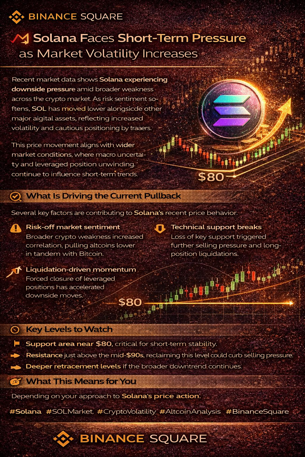 Recent market data shows Solana experiencing downside pressure amid broader weakness across the crypto market. As risk sentiment softens, SOL has moved lower alongside other major digital assets, reflecting increased volatility and cautious positioning by traders.