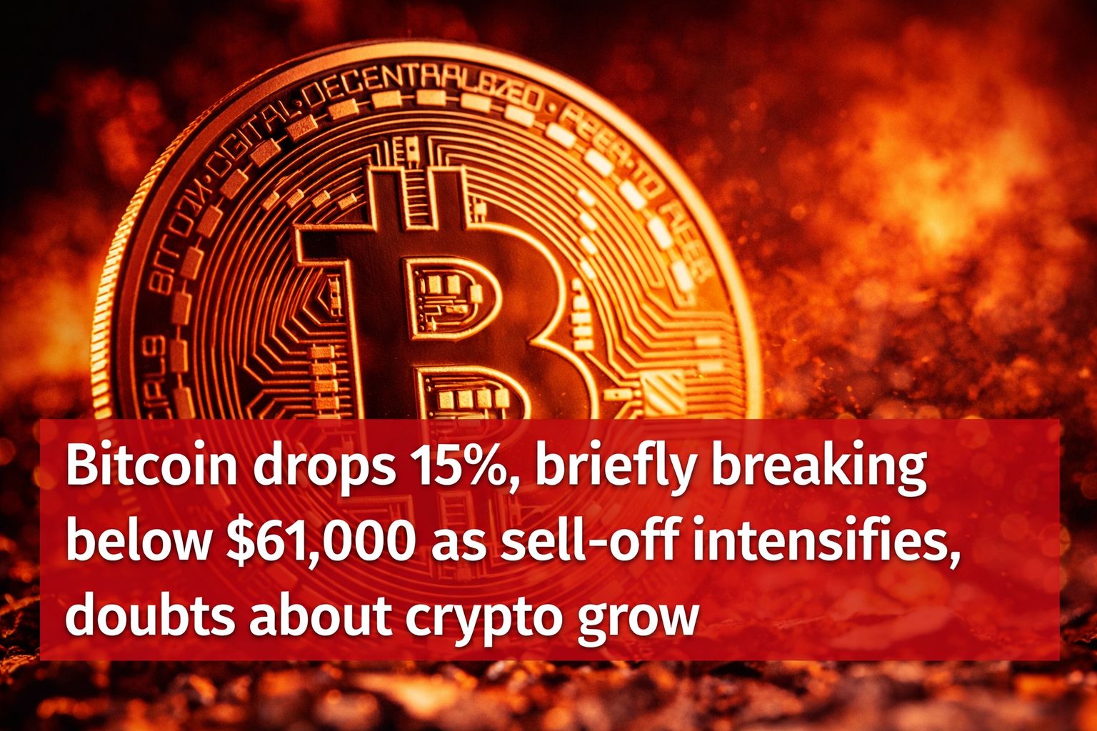 "Bitcoin tumbles 15%, briefly dipping below $61,000 amid growing market jitters."