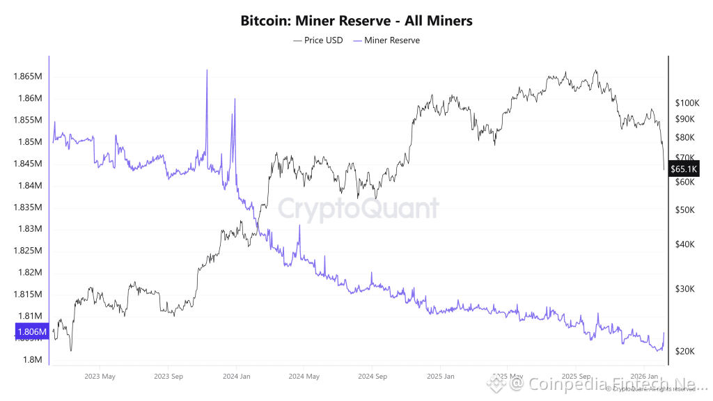 Bitcoin miner Reserves have fallen consistently over the past months and now stand near 1.806 million BTC. This indicates that miners are selling more coins than they are keeping, adding to market supply.