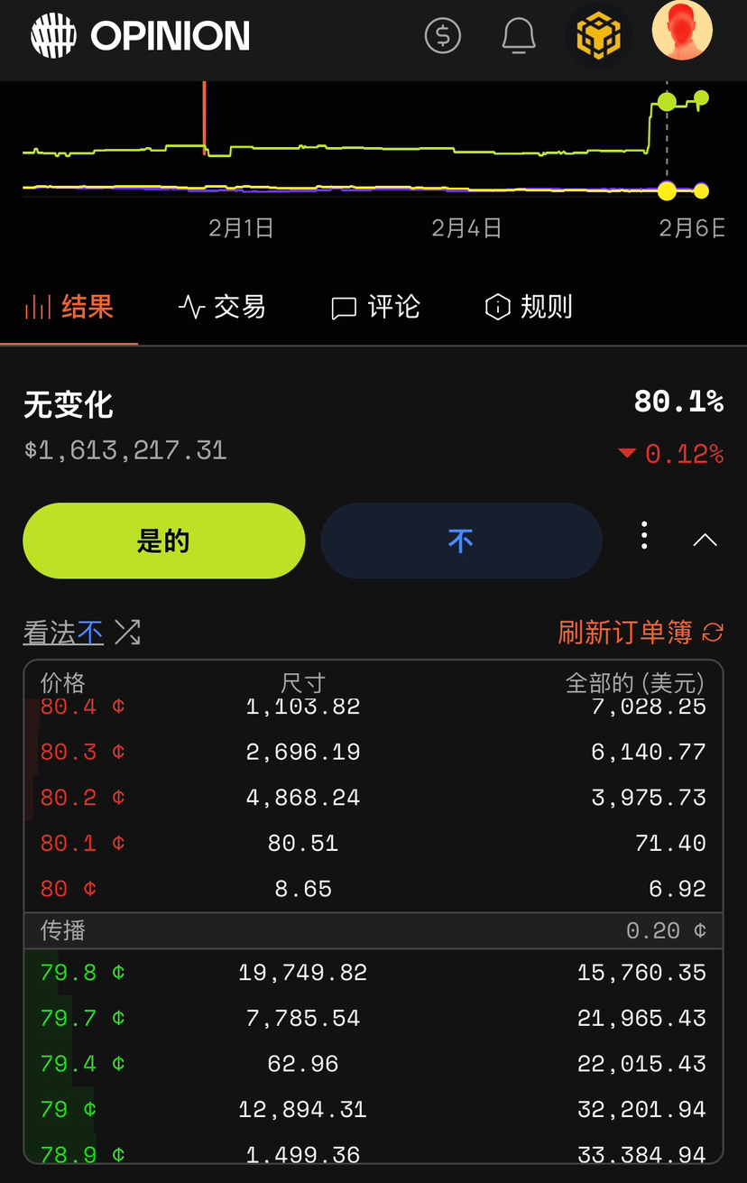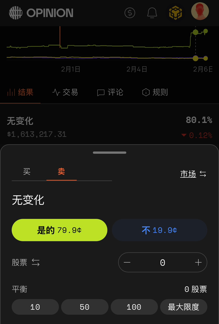 6️⃣在主页热门话题看到一个预测三月利率的直接点进去➡️然后点是的➡️然后点买➡️输入5U➡️然后过一分钟看到买进了就直接点旁边的卖➡️这种重复3次就完成所有任务了!