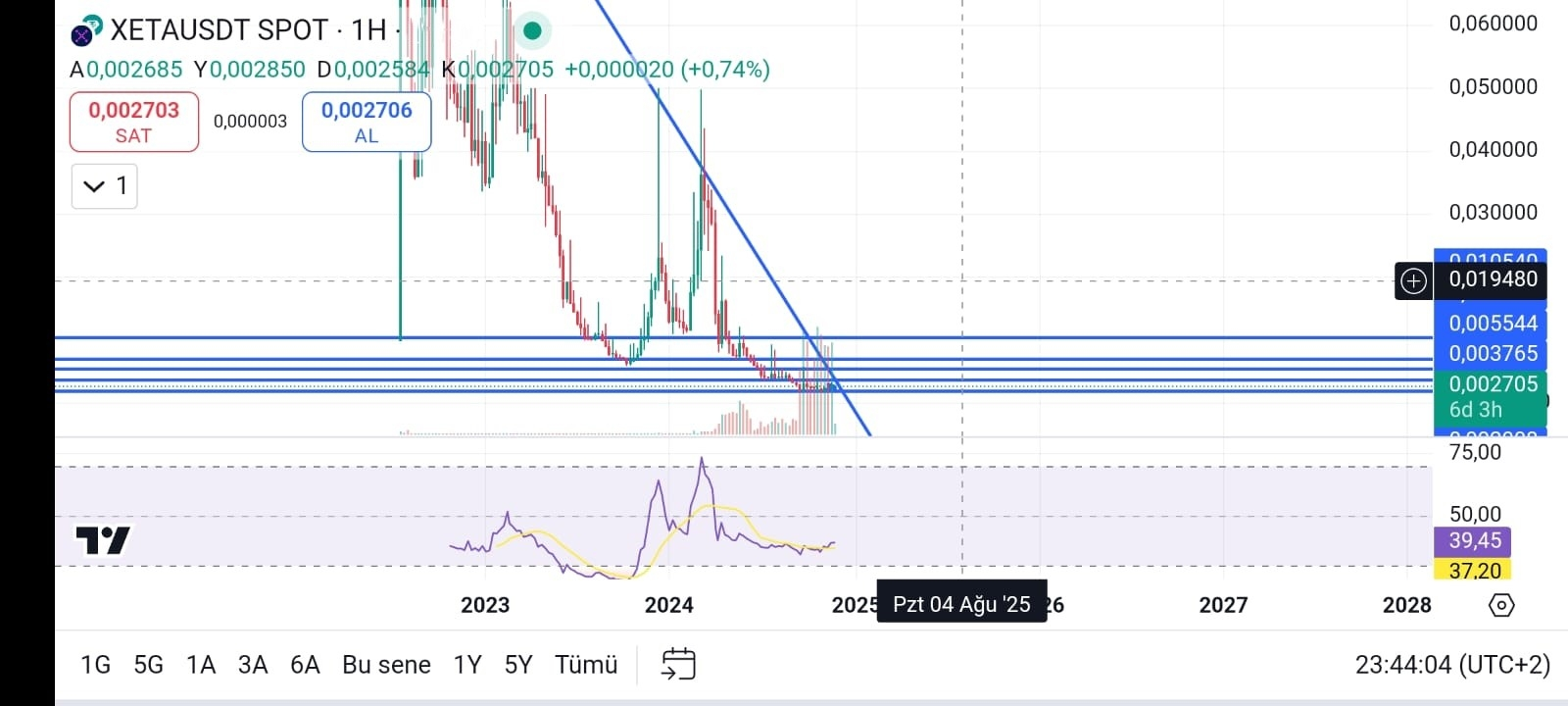 Verifică lumânările de volum; volumul intră în timp ce prețul este la minim. Acest lucru arată clar că se acumulează. În plus, există o divergență pozitivă pe RSI-ul săptămânal și o ieșire dintr-o tendință descendentă de 2-3 ani. Pe scurt, aceasta ar putea fi o oportunitate de aur