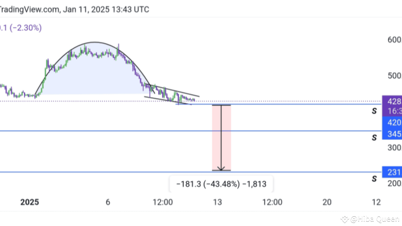 a intrat într-o fază critică, cu presiunea de vânzare dominând piața. Token-ul a format un model de cupă inversată, semnalizând o potențială tendință descendentă. Dacă $TAO își va sparge nivelul de suport, am putea vedea pierderi semnificative, iar acolo apare oportunitatea de a vinde în scurt.