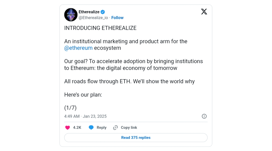 - Etheralize, susținut de Vitalik Buterin și Fundația Ethereum, își propune să atragă investitori instituționali în rețeaua Ethereum.