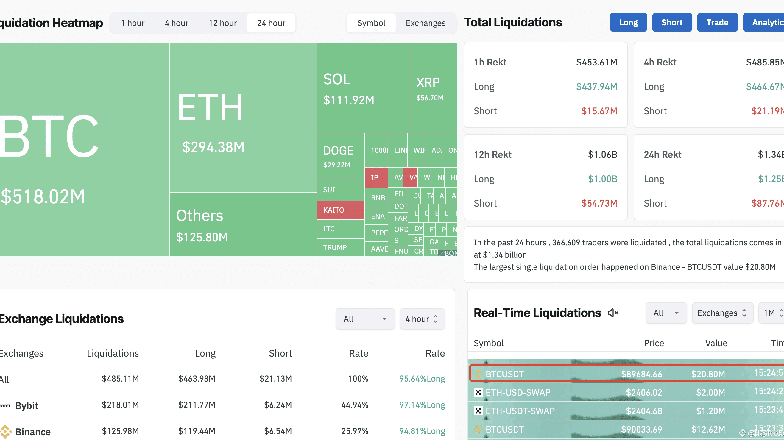 În ultimele 24 de ore, 366.734 de comercianți au fost lichidați pentru un total de 1,34 miliarde de dolari!