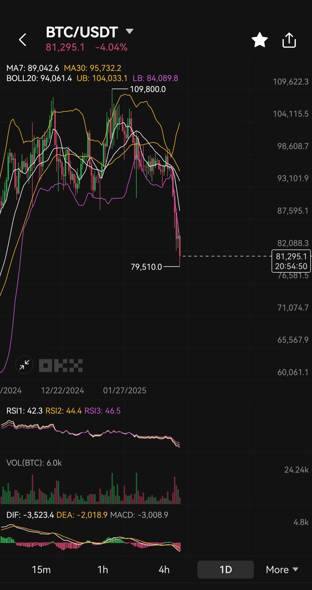 Niveluri de suport: Suportul cheie este identificat la 82.000 USD. O breșă sub acest nivel ar putea semnala scăderi suplimentare către intervalul de 70.000 USD.