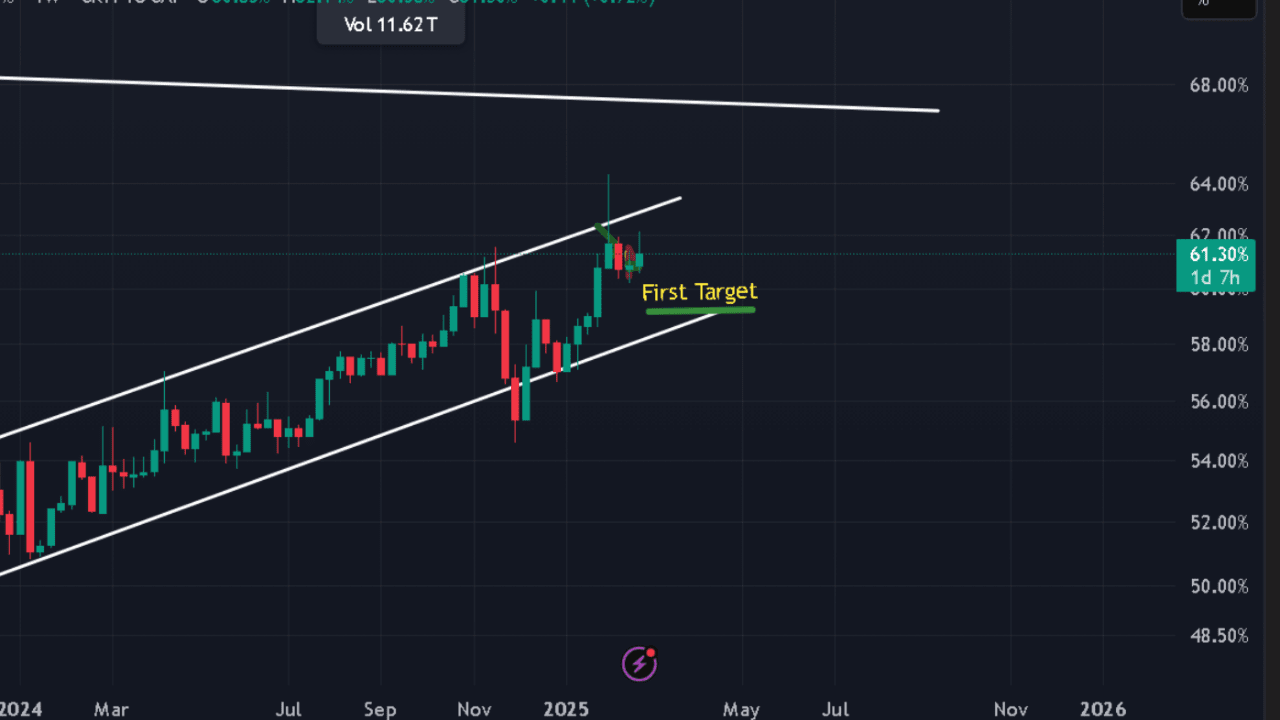 👉 Dacă acesta nu este sfârșitul, atunci BTC.D va continua să tranzacționeze în această gamă ascendentă și poate ajunge potențial la %66 - %70, care are o rezistență majoră.