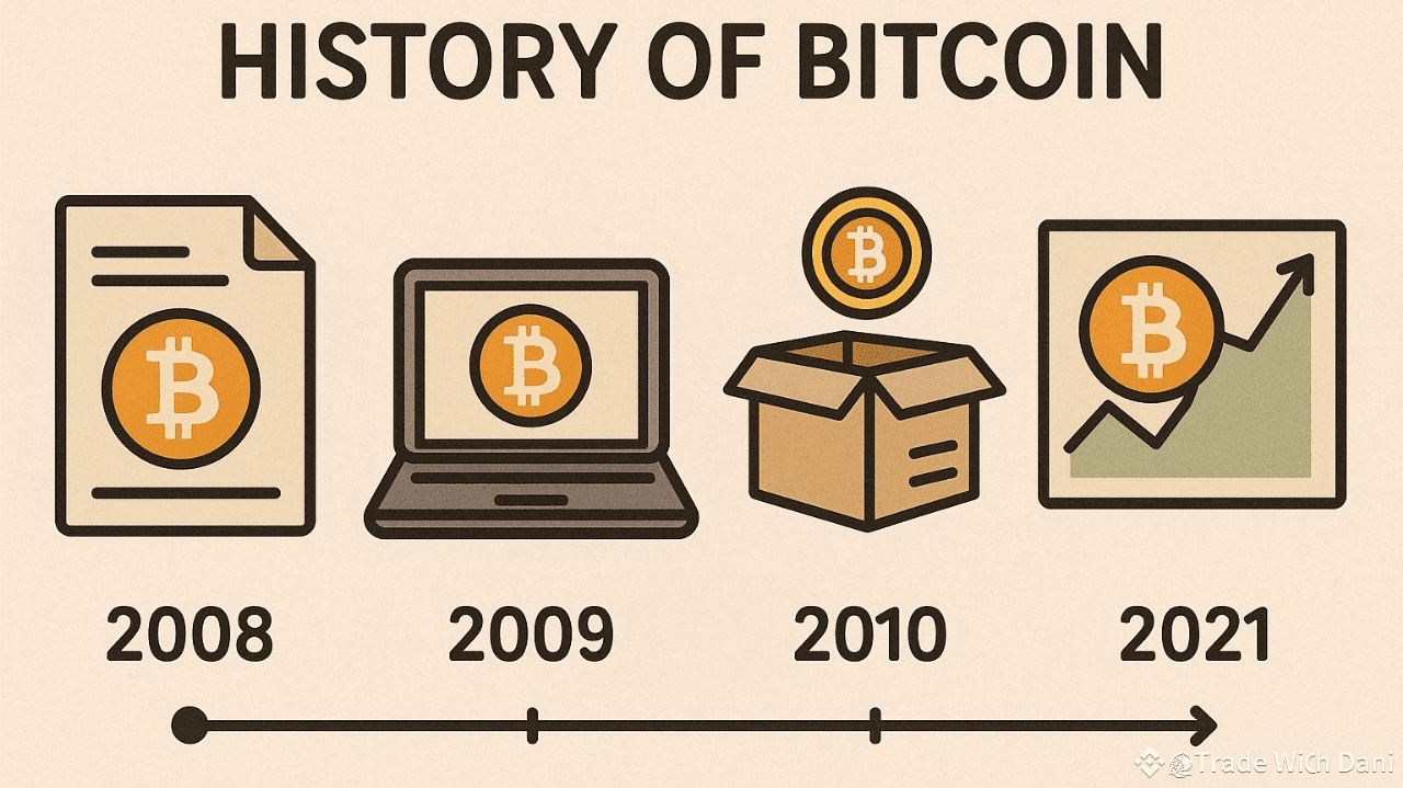 Bitcoin, prima criptomonedă din lume, a fost introdusă în 2008 de o figură anonimă cunoscută sub numele de Satoshi Nakamoto. A fost creată ca o alternativă descentralizată la monedele tradiționale, oferind un sistem peer-to-peer pentru trimiterea și primirea banilor digitali fără nicio autoritate centrală. În ianuarie 2009, rețeaua Bitcoin a devenit activă cu mineritul Blocului Genesis. La început, având o valoare practic nulă, Bitcoin a atras atenția criptografilor și entuziaștilor tehnici. Valoarea sa a început să crească pe măsură ce adoptarea a crescut, conducând la prima tranzacție reală în 2010 când 10.000 BTC $BTC