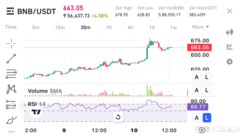 ✅ Punct de intrare: `663.50 USDT` (la răsucirea deasupra rezistenței pe termen scurt)