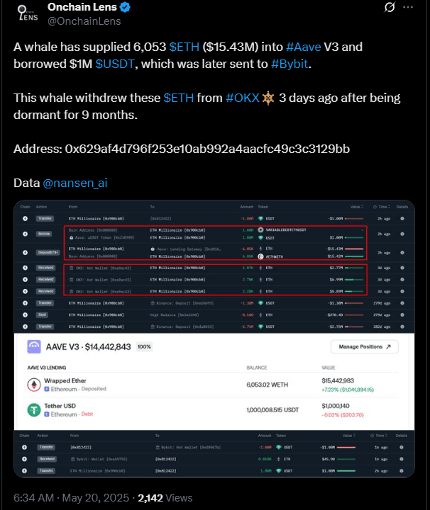 După luni de stagnare, Aave revine la viață. O influx de WETH și opțiunile extinse de împrumut au reînnoit încrederea traderilor. Rebound-ul Ethereum la 2.700 de dolari a reaprins interesul pentru împrumuturile DeFi, readucând chiar și balenele mari.