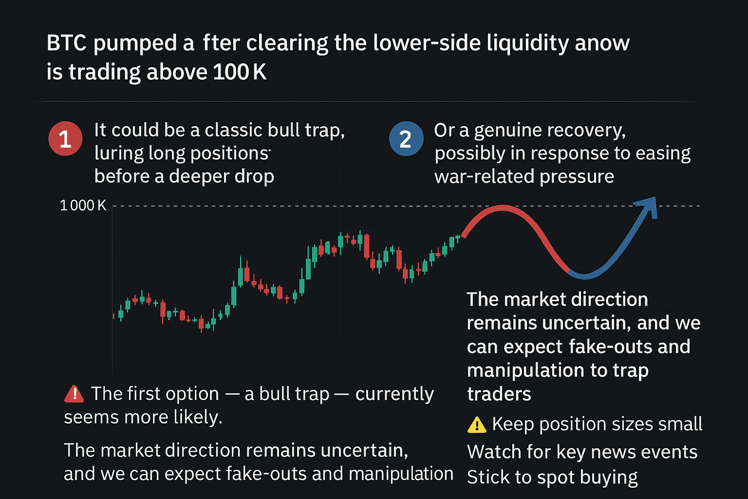 $BTC a crescut după ce a curățat lichiditatea de pe partea inferioară și acum se menține deasupra $100K.