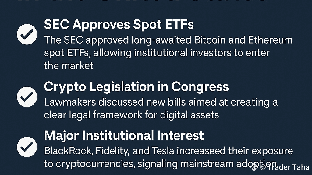 1. SEC a aprobat ETF-uri la venit: Comisia Americană de Valori Mobiliare (SEC) a aprobat mai multe ETF-uri la venit pentru Bitcoin și Ethereum, așteptate de mult timp. Această acțiune istorică a deschis ușa investitorilor tradiționali și instituțiilor financiare pentru a intra în spațiul criptomonedelor cu mai multă încredere și sprijin reglementar.