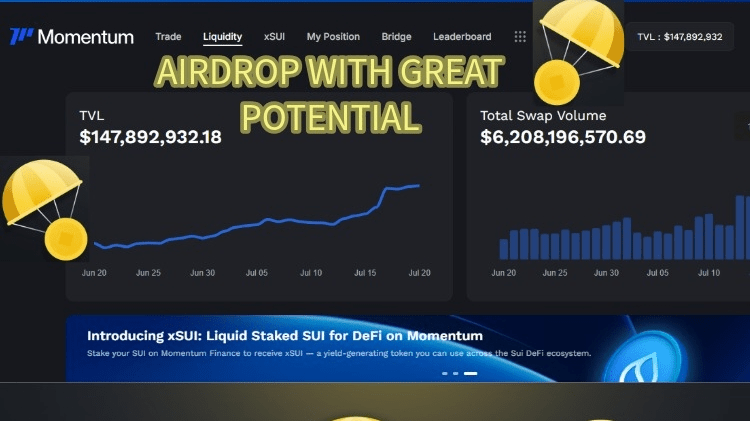 El proyecto del cual hablo es momentum, es el dex más grande dentro de SUI, tiene un tvl de más de 140 millones y va en aumento día tras día. Para exponerse al airdrop de este proyecto es tan simple como usarlo, y haciéndolo de manera inteligente incluso se puede ganár mientras se hace farming del airdrop, a continuación de cuento mi estrategia Pero no es consejo de inversión ni tienes porque replicarla.