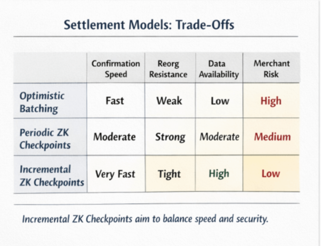 This table would show how incremental checkpoints potentially improve confirmation speed while tightening reorg exposure — but only if data availability assumptions hold.