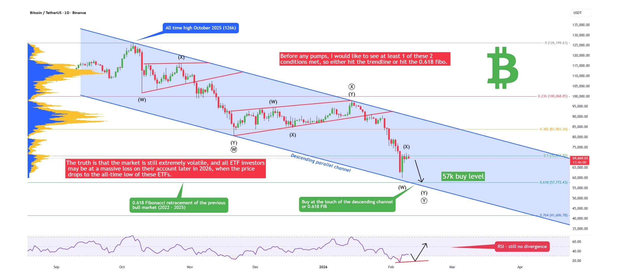 A move toward the 57K zone looks highly probable before any real bullish continuation.