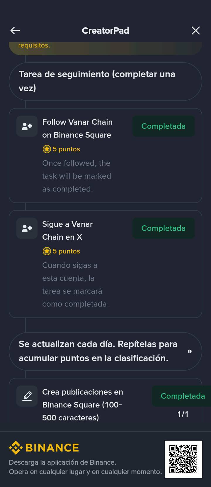 Continuă, publică și operează pentru a câștiga 6 029 411,5 VANRY în recompense de token din clasamentul global. Pentru a putea apărea în clasament și a opta pentru recompensă, trebuie să finalizezi cel puțin o dată fiecare tip de sarcină (Publicare: alege 1) pe parcursul evenimentului. Publicările care includ Plicuri roșii sau tombole vor fi considerate neeligibile. Participanții care au vizualizări, interacțiuni suspecte sau se consideră că folosesc boți automați vor fi descalificați din activitate. Orice modificare a publicațiilor deja publicate cu participare mare pentru a le reutiliza ca trimiteri la proiect va duce la descalificare. ** Actualizăm logica punctelor din clasament și datele care sunt afișate în prezent sunt cele din 25/01/2026. Toată activitatea și punctele din 26/01/2026 sunt înregistrate complet și se vor reflecta atunci când se va relua actualizarea pe 28/01/2026 la 09:00 (UTC) cu un sistem rulant T+2.