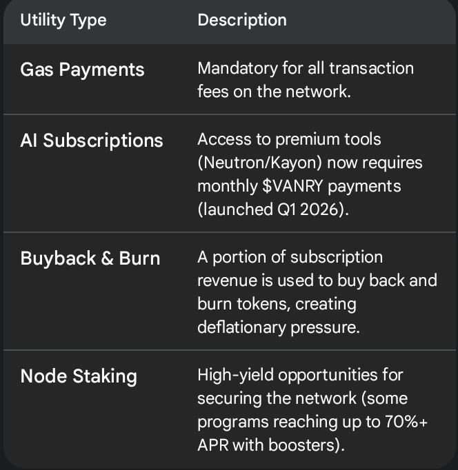 ​The $VANRY token has moved beyond speculation into a "usage driven fuel" model: