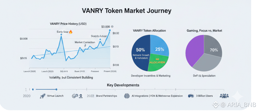 The token’s market journey has been dramatic—soaring early, correcting hard, rebuilding slowly. Prices have ranged from under a cent to over 30 cents depending on market cycles. But one thing has stayed consistent: the team keeps building. AI integrations, game partnerships, metaverse updates, enterprise tools, and steady ecosystem expansion continue even during bearish phases. For a project targeting mainstream audiences, long-term utility matters more than short-term hype.