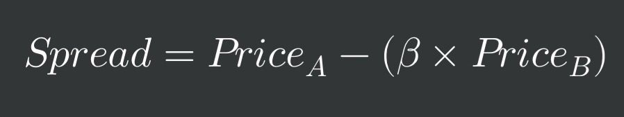 Спред — це різниця в ціні між двома активами, скоригована на коефіцієнт хеджування (\beta):