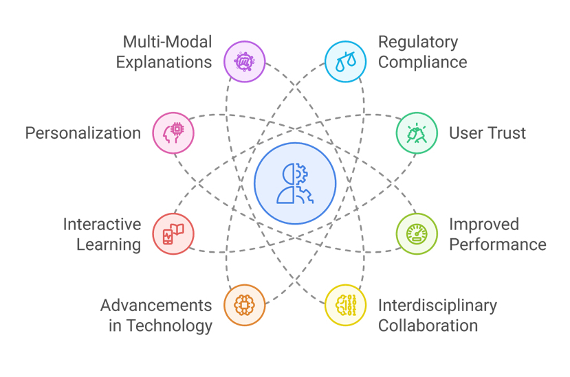 This diagram captures why explainable AI matters: it builds trust, meets regulations, improves learning, and boosts performance all critical for real world adoption.