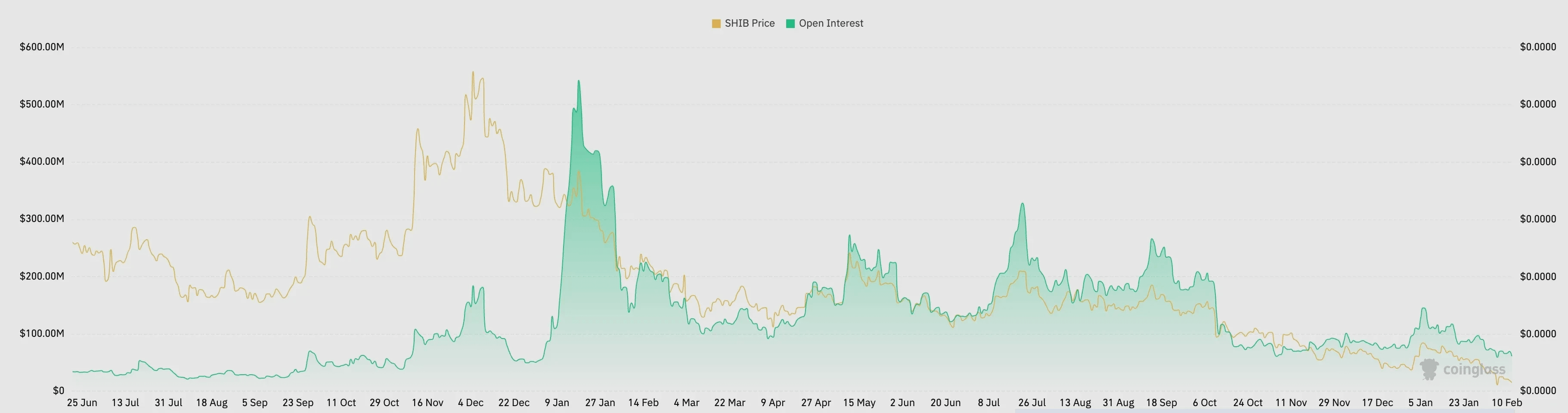 Ratele de finanțare negative indică faptul că vânzătorii în scurt domină piața. Comercianții care dețin poziții scurte se așteaptă ca prețurile să scadă și mai mult. Această dinamică creează o presiune suplimentară în jos asupra SHIB.