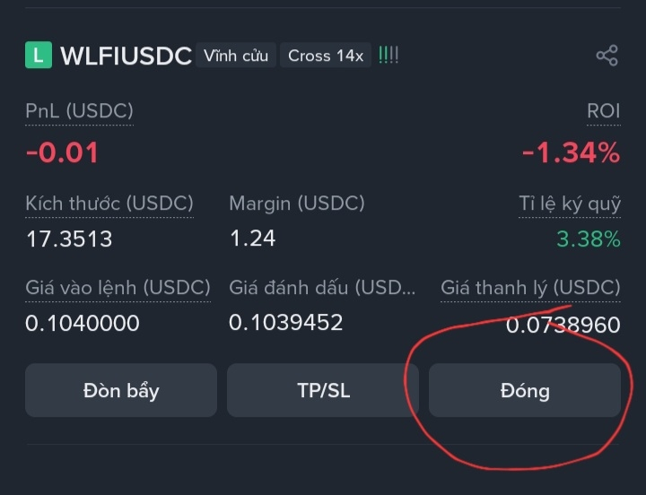 2. Bấm vào nút Close Position (Đóng vị thế) trên lệnh bạn muốn chốt.