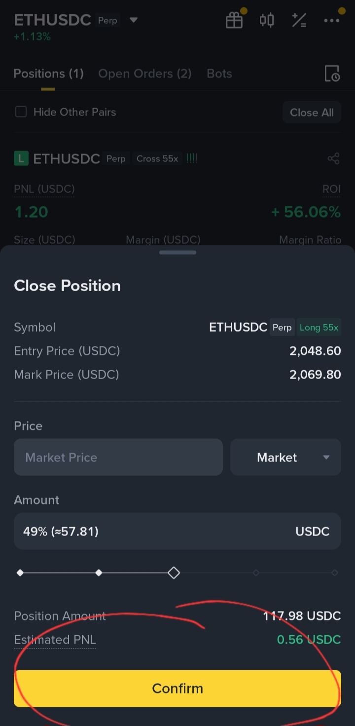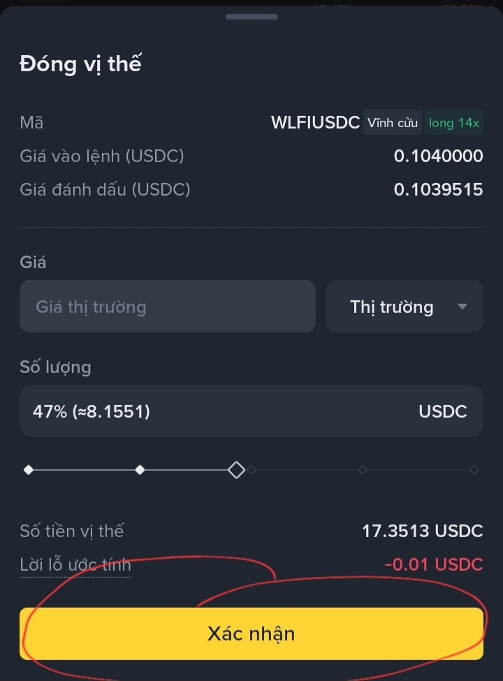 Lúc này, sàn sẽ bán một nửa lệnh của bạn để chốt lời, một nửa còn lại vẫn tiếp tục chạy.