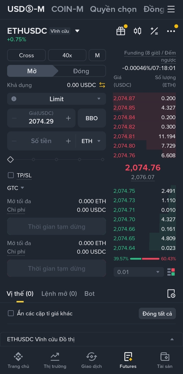 Chế độ này cho phép bạn mở cả lệnh Long và Short cùng lúc trên một cặp coin.